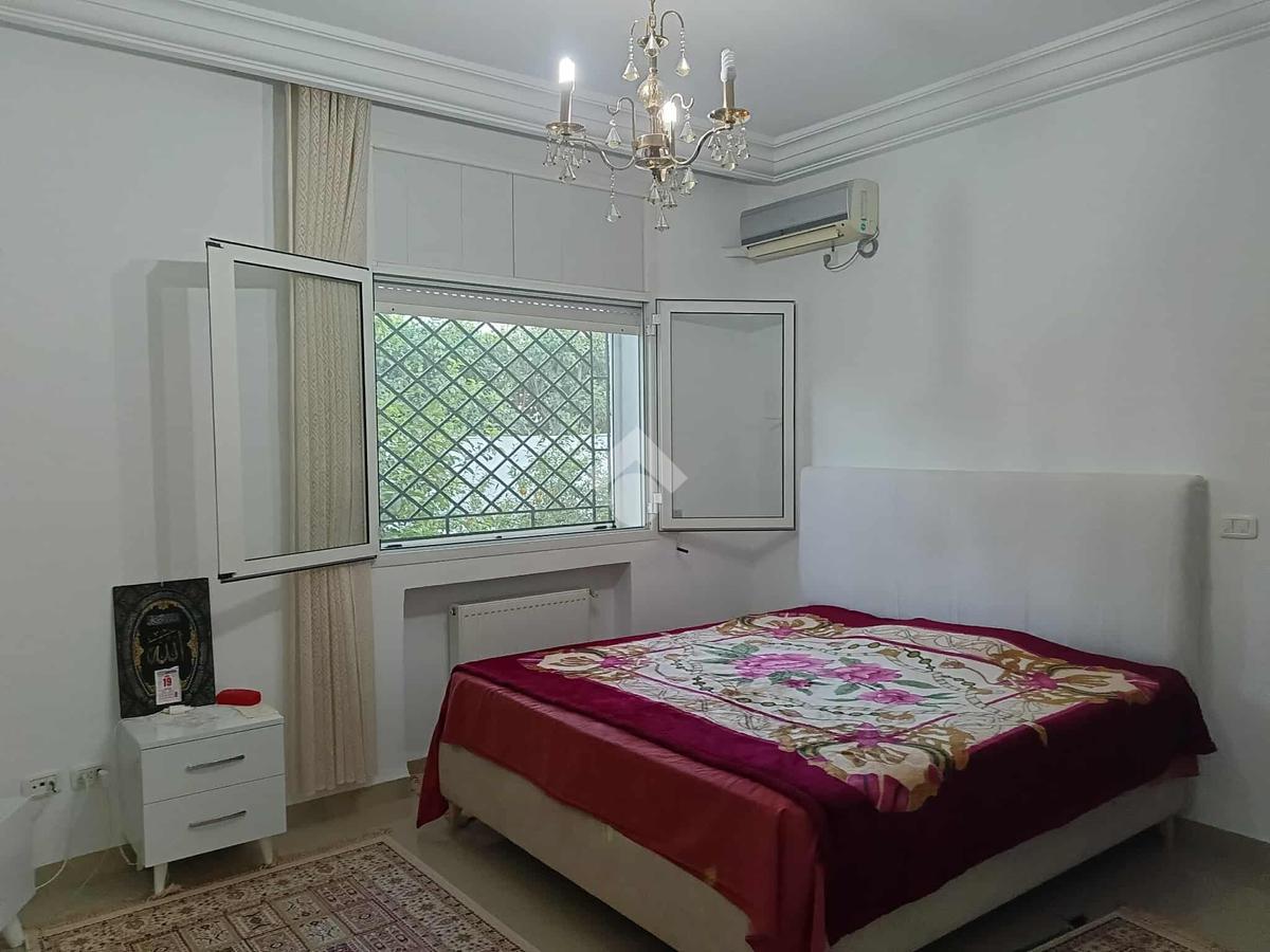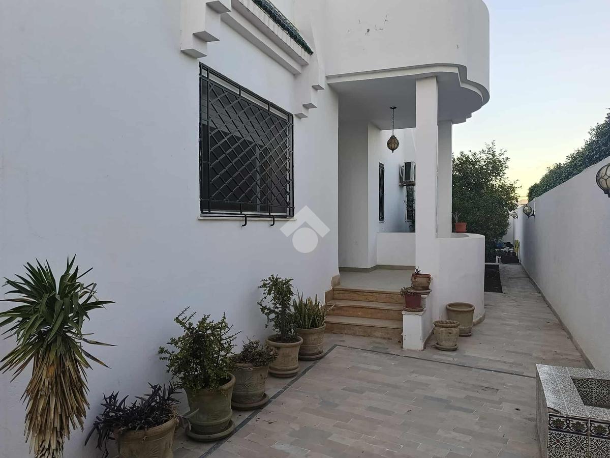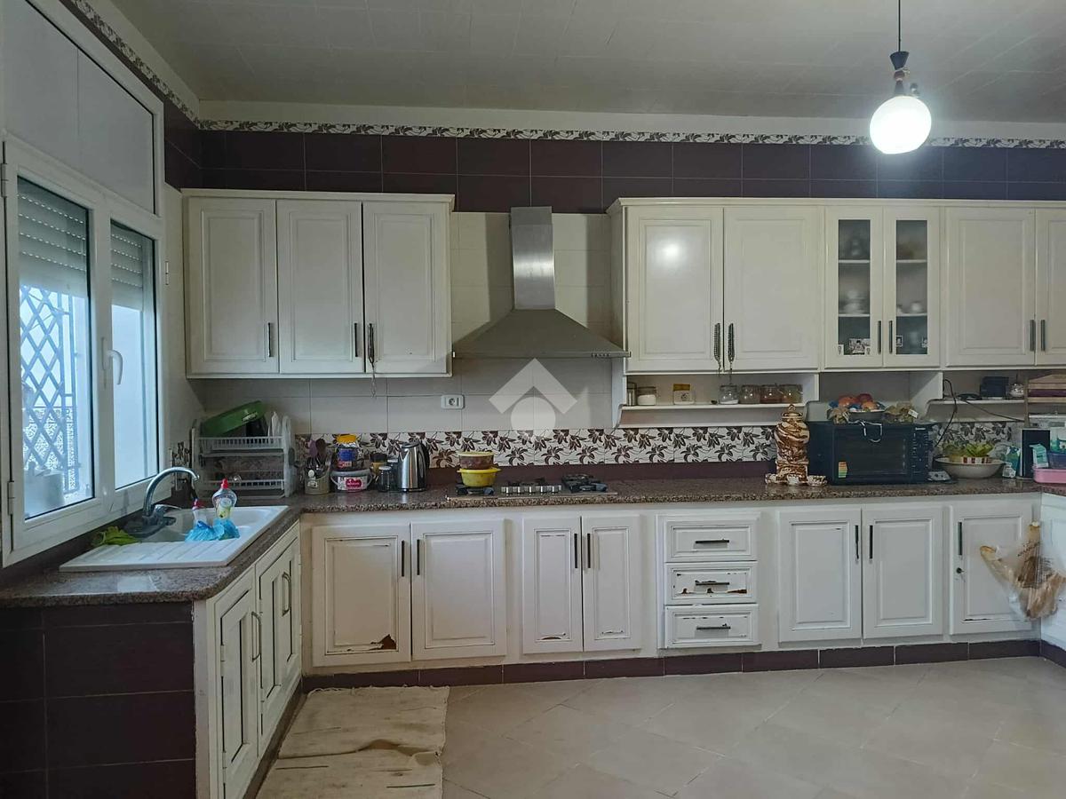 Villa plein pied en s+4 , située dans un quartier calme et résidentiel sur une route principal. Dès l’entrée, vous découvrirez un salon lumineux, une cuisine équipée d’une hotte, une plaque,et offre de nombreux rangements pratiques, avec un accès direct au on trouve trois chambres à coucher avec Une salle de bain est une suite parentale .