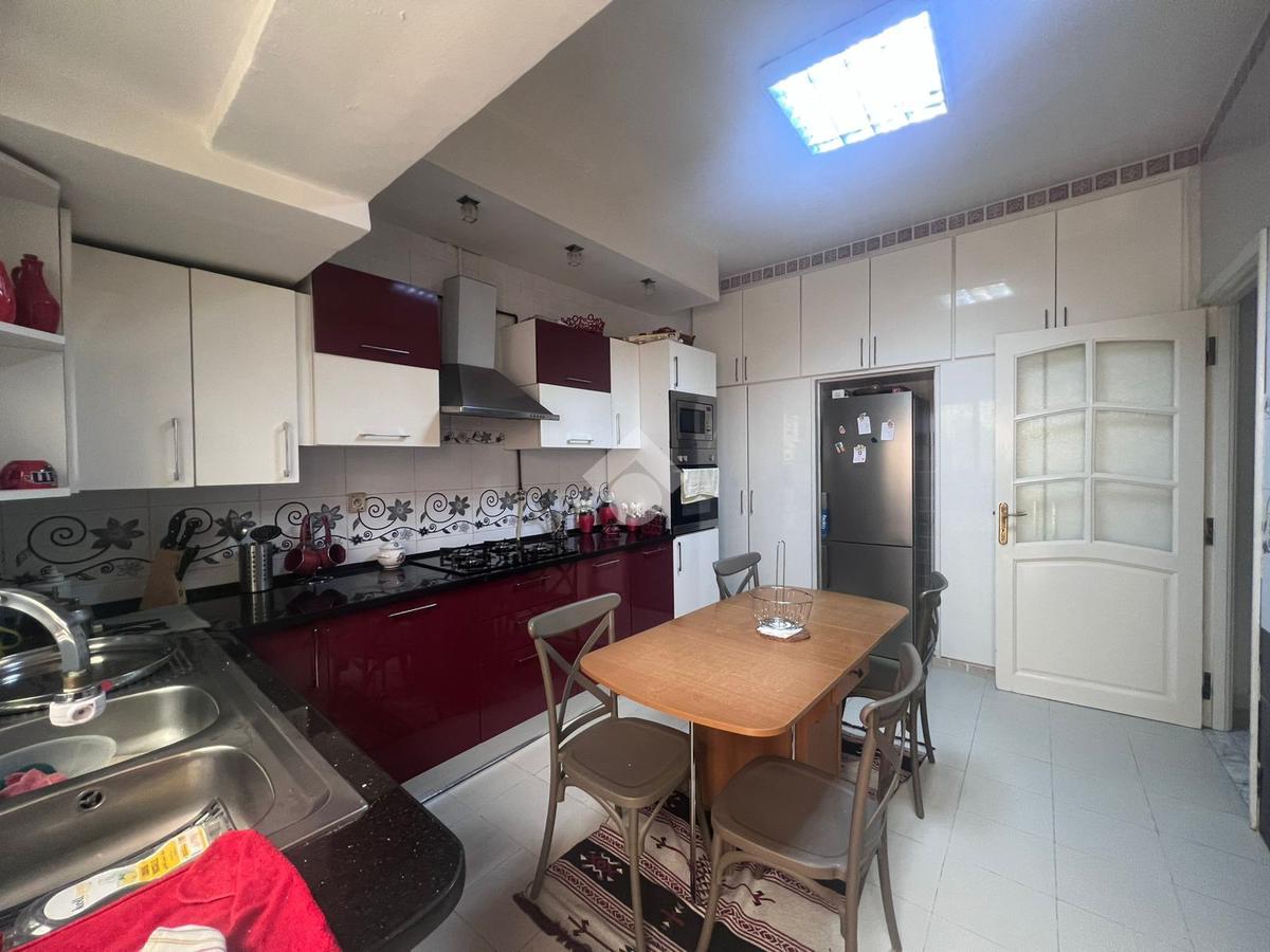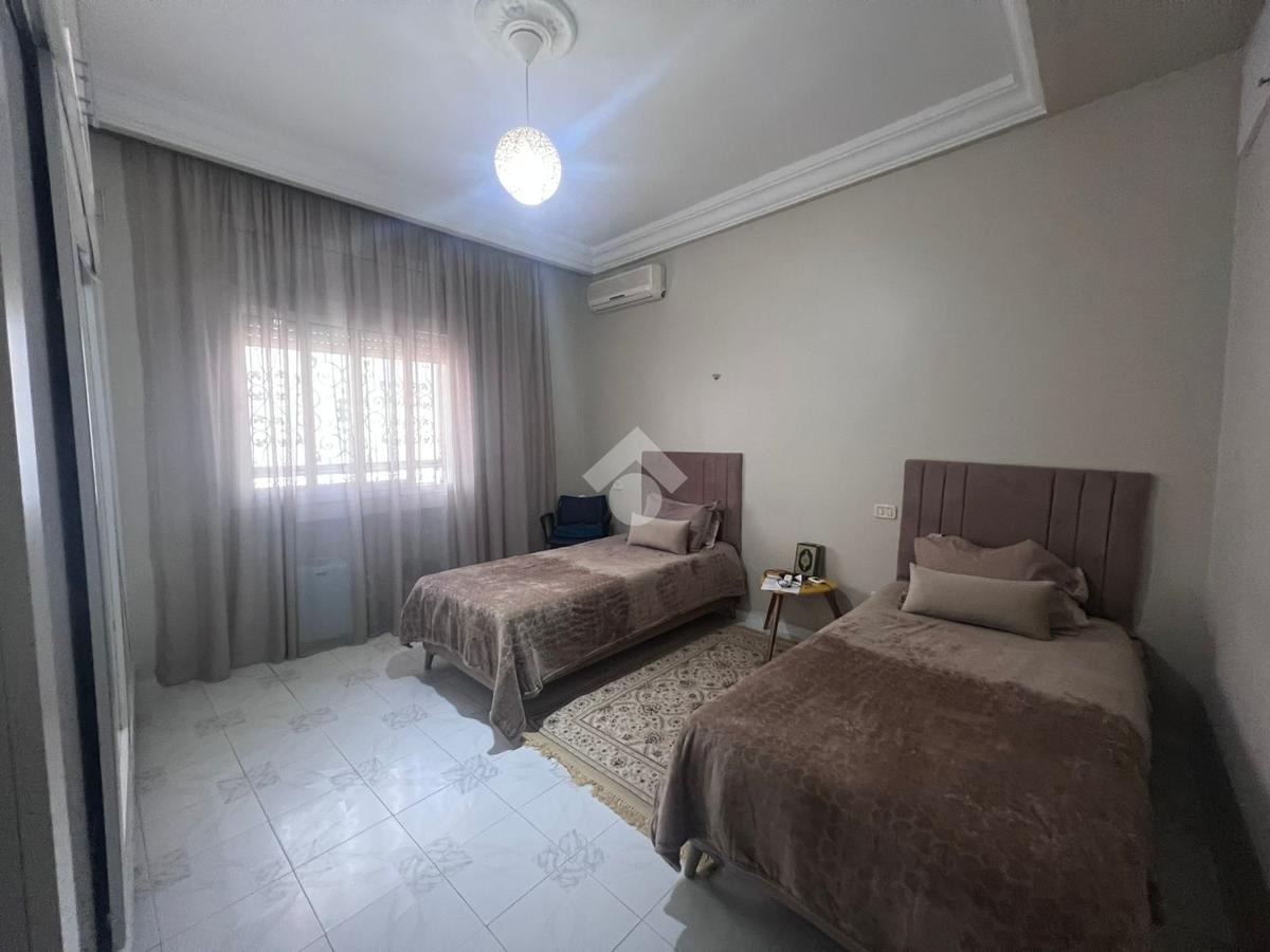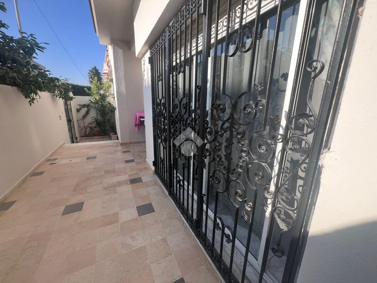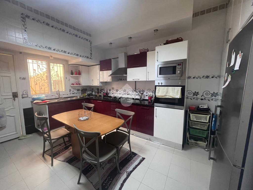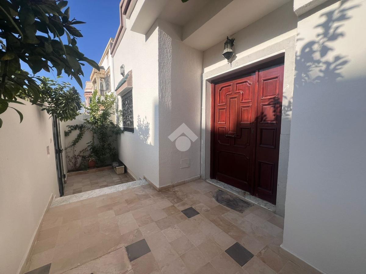 maison sur un seul niveau de type S+3, idéalement située dans un environnement calme et résidentiel. À l’entrée, un salon spacieux et élégamment agencé bénéficie d’une luminosité naturelle optimale. La cuisine, fonctionnelle et bien aménagée, est équipée d’une hotte aspirante, d’une plaque de cuisson et d’un four, et dispose de nombreux espaces de rangement. L’espace nuit comprend trois chambres à coucher, dont deux avec dressings intégrés, se partageant une salle de bain . Un garage pouvant accueillir un véhicule est également mis à disposition.